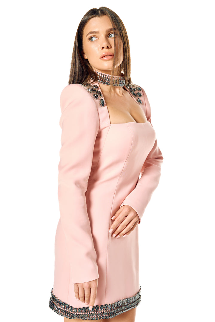 An exquisite fusion of edgy glamour and timeless elegance, this captivating Choker Shoulder Stone Embellished Dress combines bold design elements with intricate detailing, resulting in a garment that effortlessly commands attention. The choker neckline adds a touch of modern allure, framing the neck with a chic and daring accent. Adorned with meticulously placed stone embellishments along the shoulders, the dress becomes a work of art, capturing the light in a mesmerizing dance. Each stone is a testament to meticulous craftsmanship, enhancing the dress with a touch of opulence and sophistication. Whether gracing a red carpet event, embracing a stylish soirée, or seeking to make a dramatic entrance, the Choker Shoulder Stone Embellished Dress is a true celebration of bold fashion choices and refined luxury. With its harmonious blend of daring and elegance, this dress ensures your presence is unforgettable and your style is as distinctive as it is captivating.
